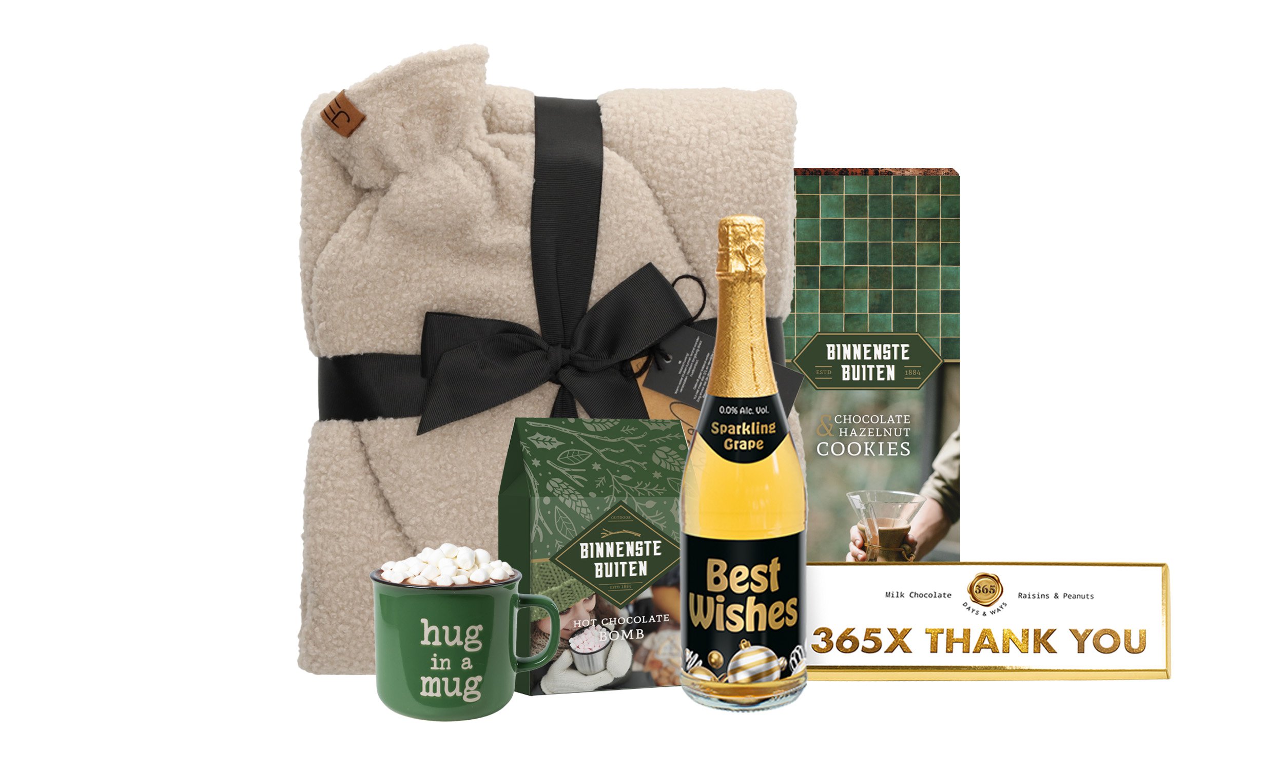 Jens Living Giftset Winter Taupe Jens Living Retro Mok Have a Ball Sparkling Grape 0,0% alc, 750 ml 365 Days Chocoreep XXL, 225 gr Binnenstebuiten ChocHaz cookie, 135 gr Binnenstebuiten Hot choc.spoon, 20 gr Verpakt in een feestelijke doos op maat