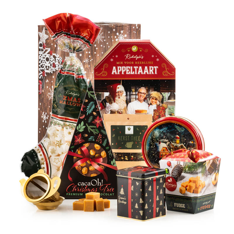 Kerstmis is niet compleet zonder die heerlijke geur van zelfgebakken appeltaart, de zoete smaak van fudge en knusse momenten met elkaar. Dit kerstpakket brengt je in die cozy holiday mood. Perfect voor thuisbakkers, theeleuten en snackfans!