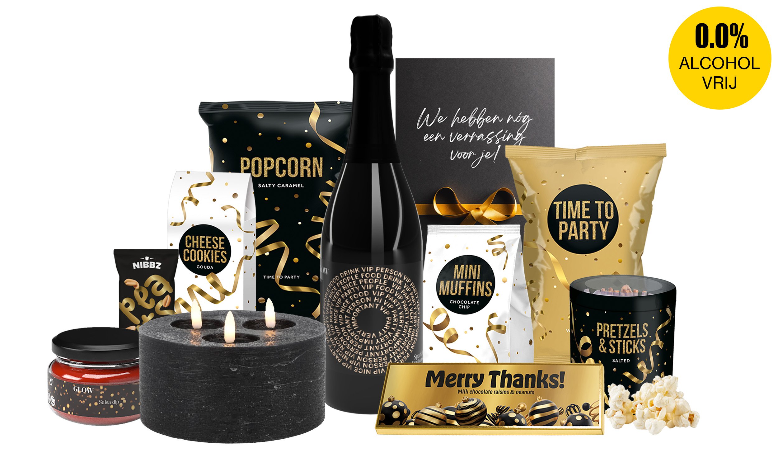Met een gezellig kaarslicht, bubbels zonder alcohol en een tafel vol snacks is dit het ideale pakket om samen te genieten. Van zoet tot hartig, voor jong en oud, dit is kerst zoals het bedoeld is: warm, lekker en met elkaar.