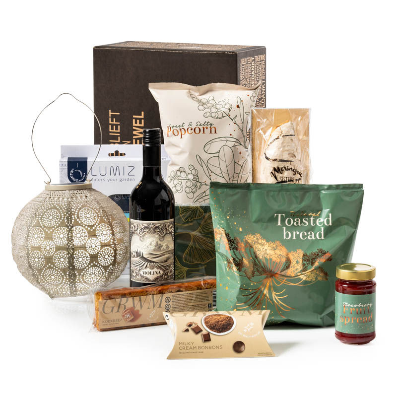 Verfijning, rust en smaak in één geschenk, dat geeft dit kerstpakket weer. Het is een combinatie van natuurlijke luxe met verfijnde smaken. De elegante verpakkingen, rustige kleuren en smaakvolle inhoud zorgen voor een stijlvol moment van ontspanning. Ideaal voor wie houdt van sfeer, goede Spaanse wijn en pure producten. De oplaadbare solar lamp voor in tuin of woonkamer is dè eyecatcher in dit kerstpakket.