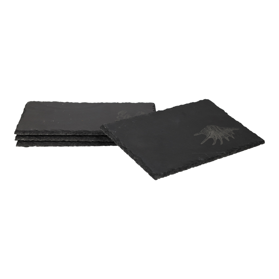 Deze set bestaat uit vier serveerplanken van leisteen. Ieder plankje heeft een eigen gravering in zee-thema, wat een unieke en speelse uitstraling geeft. Een ideale set voor het presenteren van hapjes, voorgerechten of zeevruchten.