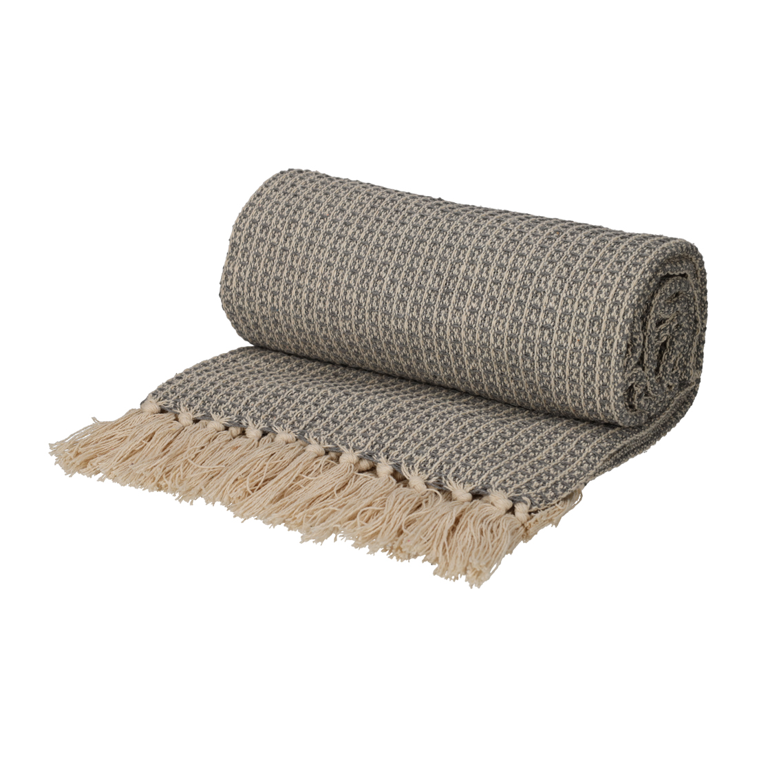 Dit plaid uit India is gemaakt van gerecycled katoen en heeft daardoor een duurzaam karakter. Met het wafelpatroon en de trendy kwastjes is dit plaid een leuke verschijning in je interieur. Leg het plaid uitgevouwen op de bank of op het bed of gebruik dit kleed om heerlijk onder te kruipen tijdens de koude winterdagen.