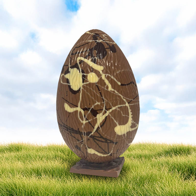 Wat zou Pasen zijn zonder paaseieren, daarom dit heerlijke hand gegoten chocolade paasei van maar liefst 25 cm groot, ± 350 gram. Dit kingsize paasei is gemaakt van de lekkerste Belgische melkchocolade en versiert met spetters van pure en witte chocolade. Het resultaat: een vrolijk paasfeest voor iedereen. Hij is heerlijk om te krijgen of om als cadeau weg te geven. Verpakt in een transparante folie met strik. Besteleenheid: 3 stuks