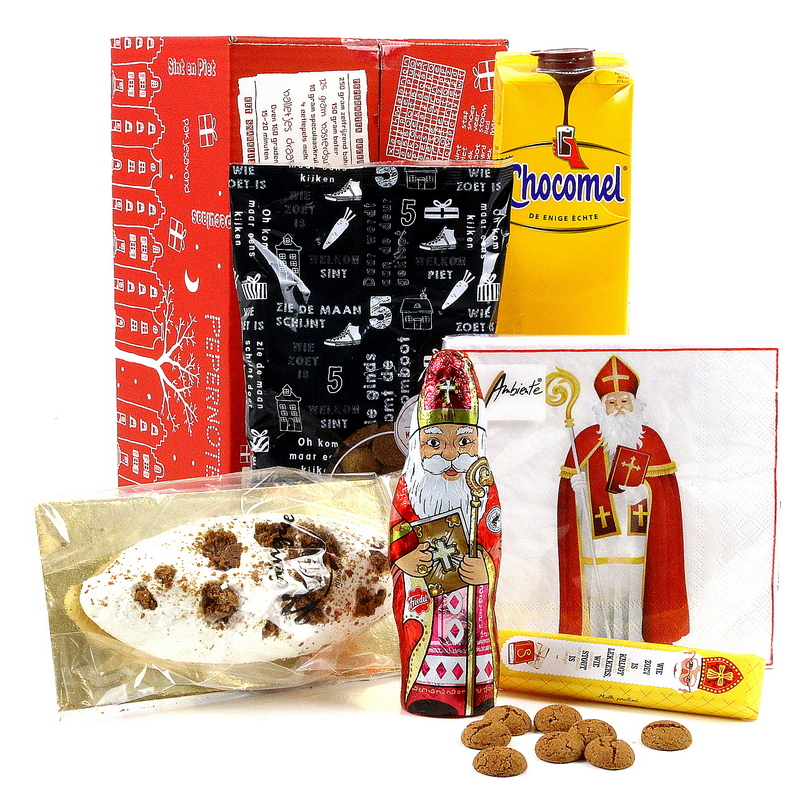 Met deze geschenkdoos van de Sint geniet je met je hele familie van al het lekkers. Het bevat een pak Chocomel, 1ltr, een zak kruidnoten, 200gr, een chocolade Sint figuur, 60gr, een scooped meringue met speculaas, 48gr en een Sint chocolade bar met praliné, 45gr. Aan de bovenzijde van de doos vind je allerlei spelletjes voor de kinderen om te doen en zelfs een recept voor het maken van pepernoten!